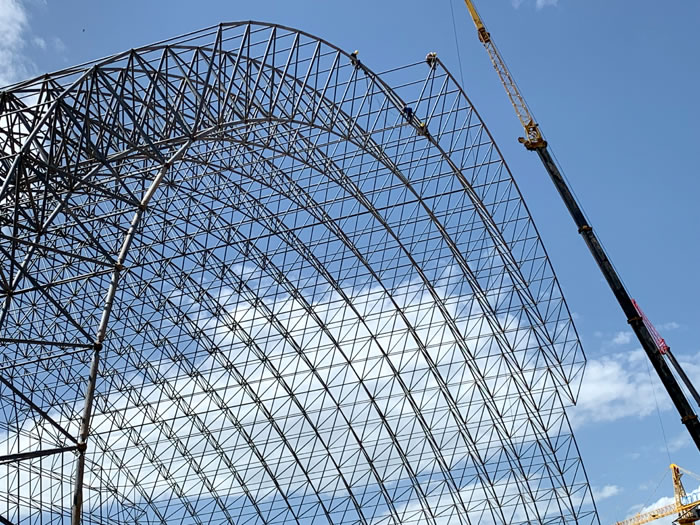(2)网架加工前应对现场尺寸进行复测,确认无误后方可进行加工、安装;网架制作、运输、安装应遵守《空间网格结构技术规程》JGJ7-2010、《钢网架黄浦螺栓球节点》JG/T 10-2009、《钢网架黄浦螺栓球节点用高强度螺栓》 GB/T 16939-2016、《钢结构黄浦工程黄浦施工规范》 GB50755-2012、《钢结构黄浦工程施工质量验收标准》 GB50205-2020。