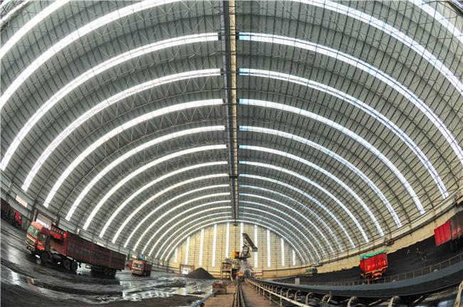 堆场料场封闭式主体结构为新型的钢黄浦网架结构,维修结构为钢结构黄浦不锈钢板和纤维增强塑料灯具,其外形以黄浦网架式和平板为主,连接柱黄浦施工自由,设置喷雾自动喷水系统,从而可以实现棚内所有物料的覆盖,减少物料在运输过程中的损耗,起到防尘的作用,减少工厂关闭后的二氧化硫排放量,50mg/m3颗粒排放量小于10mg/m3,非常适合低能耗。低闭库自动感应反应对库存轮胎进行清洁,确保轮胎不受道路污染;封闭的储存区可从源头控制粉尘污染,控制无序排放。